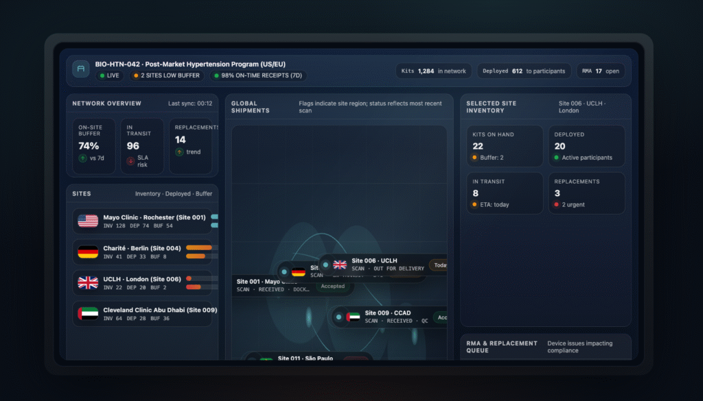 Every device — from tablet to wearable to charger — is tracked in Delve’s supply chain system. Study teams always know what’s deployed, what’s in transit, and what needs replacement.